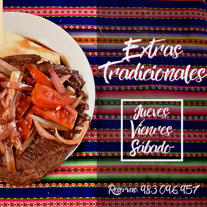 JUEVES - VIERNES - SABADOVen y disfruta de nuestras ricas extras tradicionales junto con la rica frutillada y chichita tradicional.Reservas y más información al 983 096 957Cumplimos con todos los protocolos de bioseguridad para garantizar tu salud.